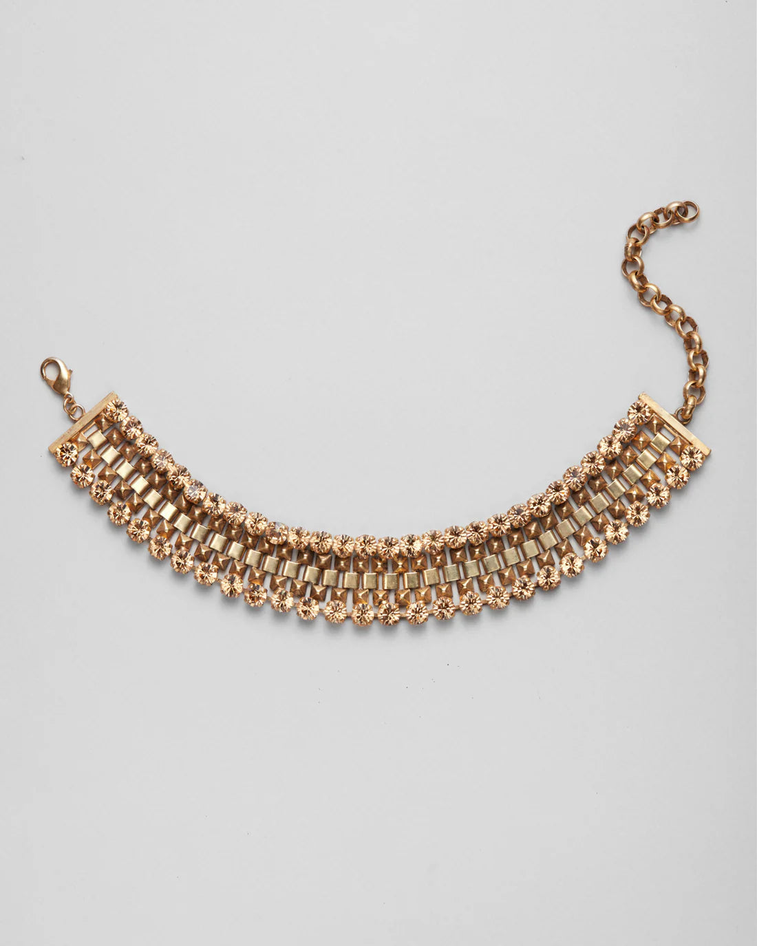 Ce ras de cou, avec sa superbe chaine studs triple rangs bordée de cristaux et ses détails étincelants en font l'une des pièces de notre collection la plus intemporelle.