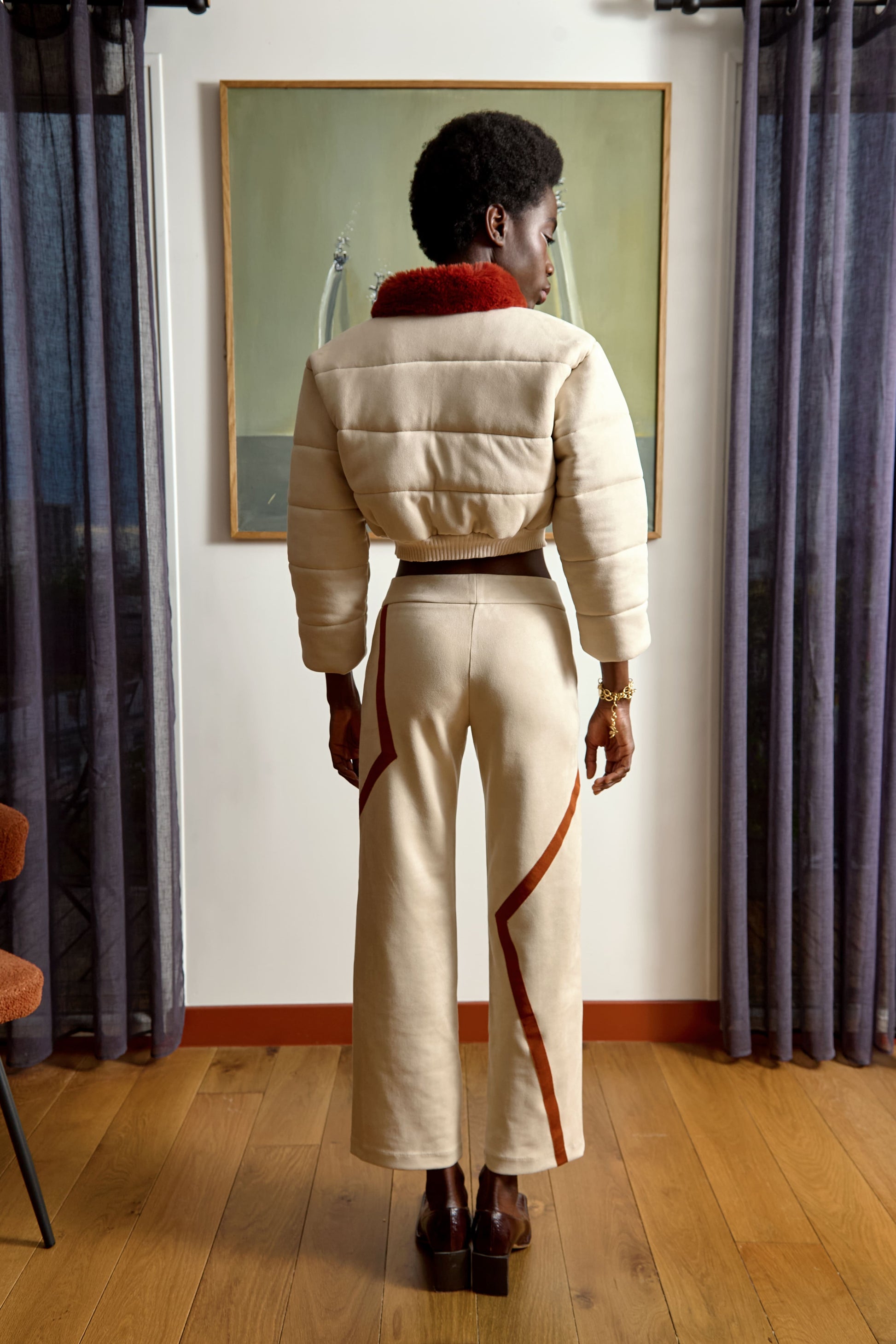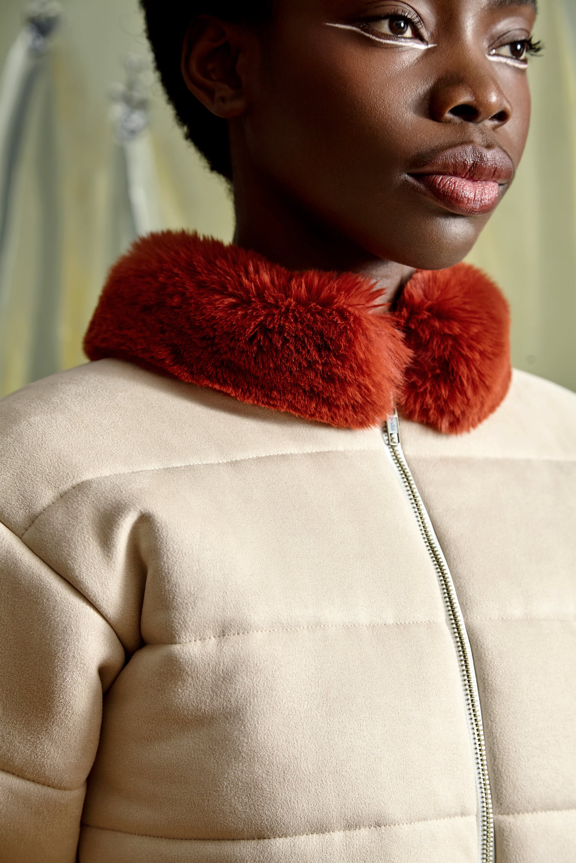 Doudoune matelassée légèrement raccourcie, cintrée à la taille, avec un col montant en fausse fourrure.