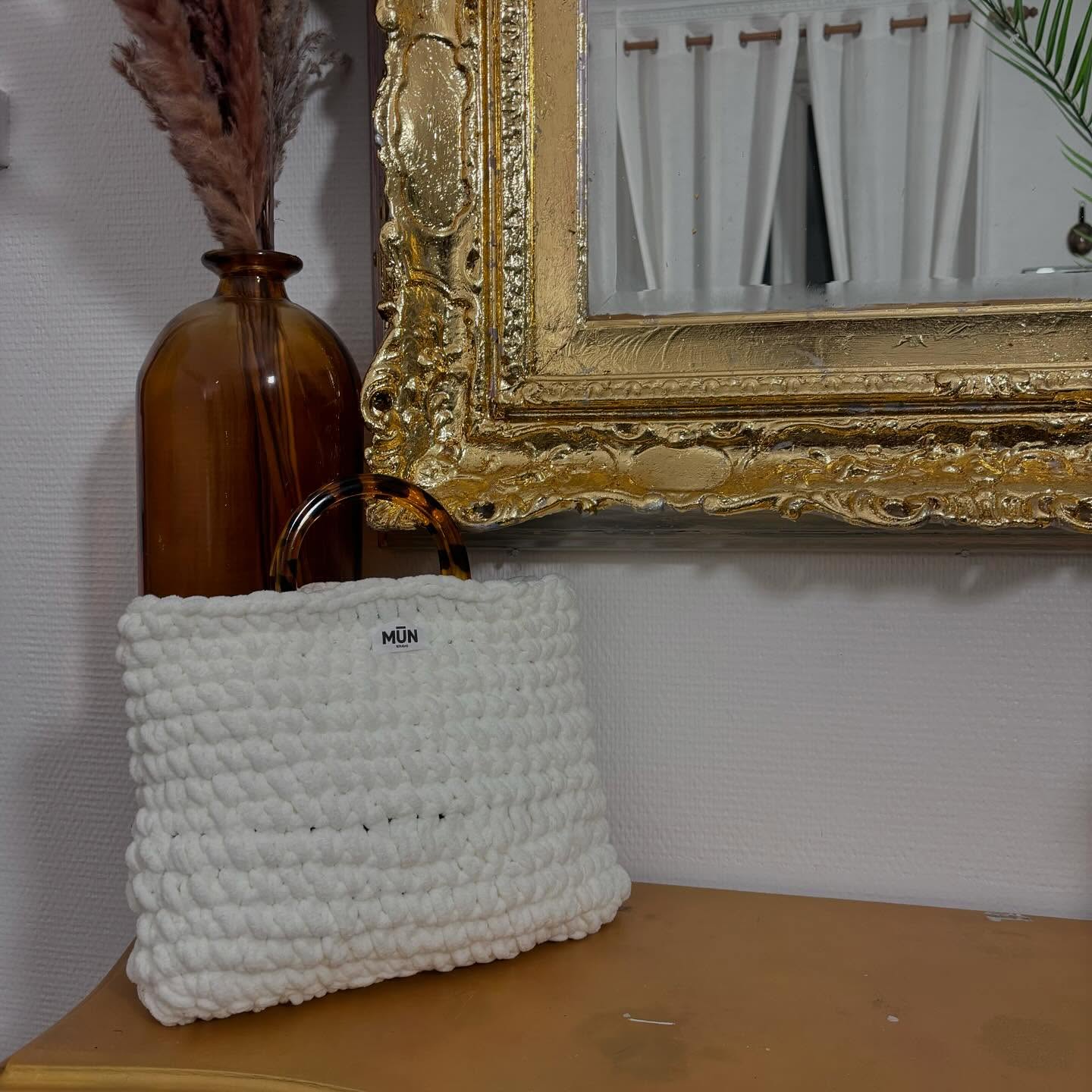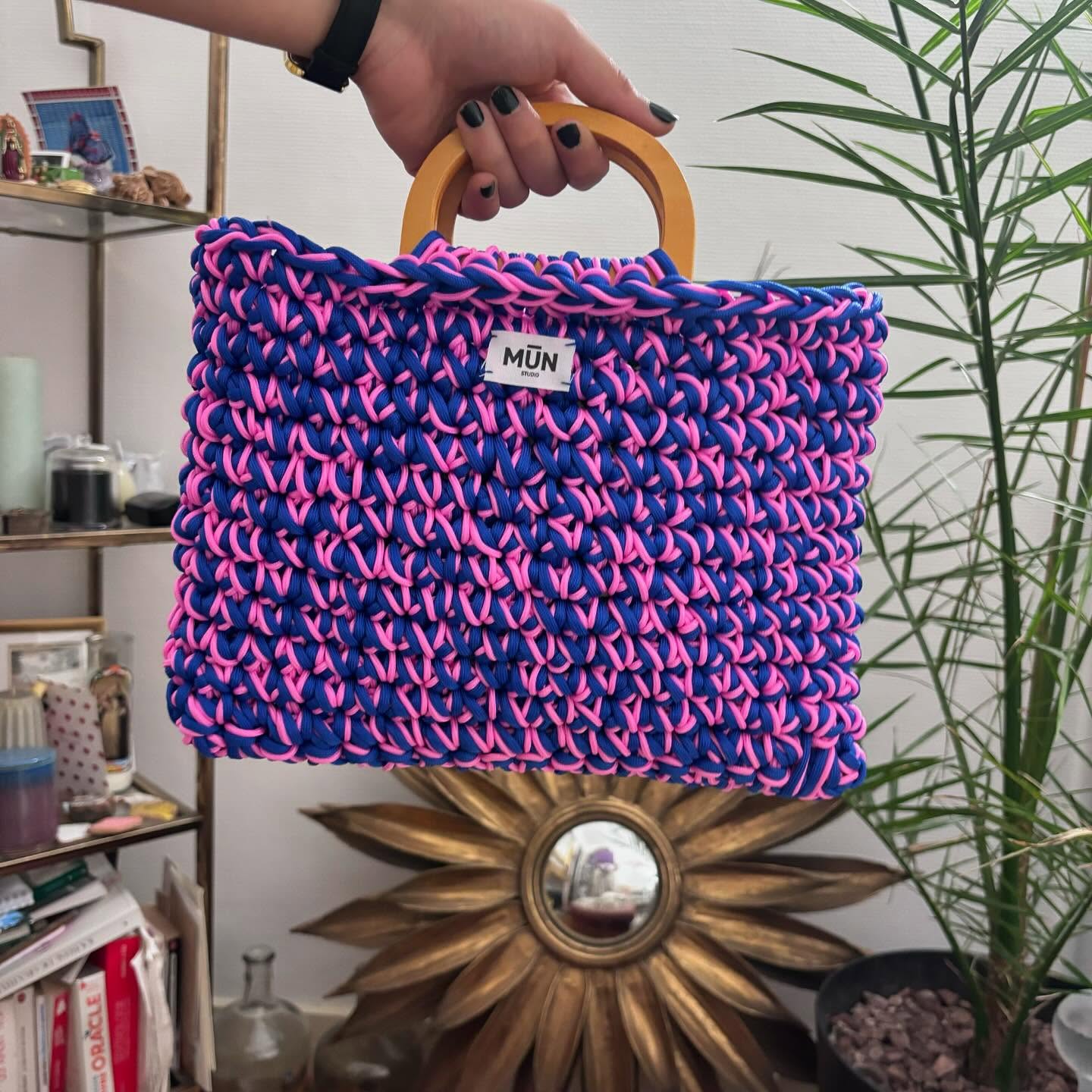 Ce sac à main en maille ou corde est un véritable basique revisité. Son design épuré et intemporel en fait un accessoire polyvalent qui s’adapte à toutes les tenues. L’anse en bois ajoute une touche naturelle et sophistiquée, pour un look à la fois chic et décontracté.