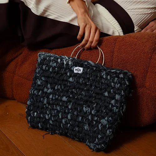 Ce sac à main en denim est un véritable basique revisité. Son design épuré et intemporel en fait un accessoire polyvalent qui s’adapte à toutes les tenues. L’anse en laiton ajoute une touche naturelle et sophistiquée, pour un look à la fois chic et décontracté.