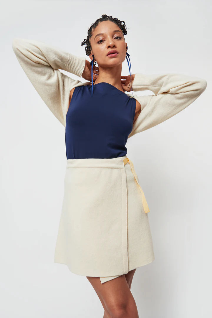 Tricoté en laine mérinos, notre pull Ione style boléro est un essentiel de votre garde-robe, adapté à toute les saisons.