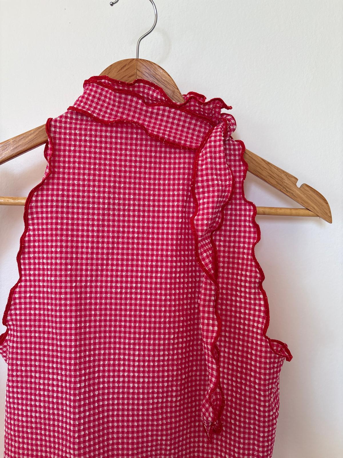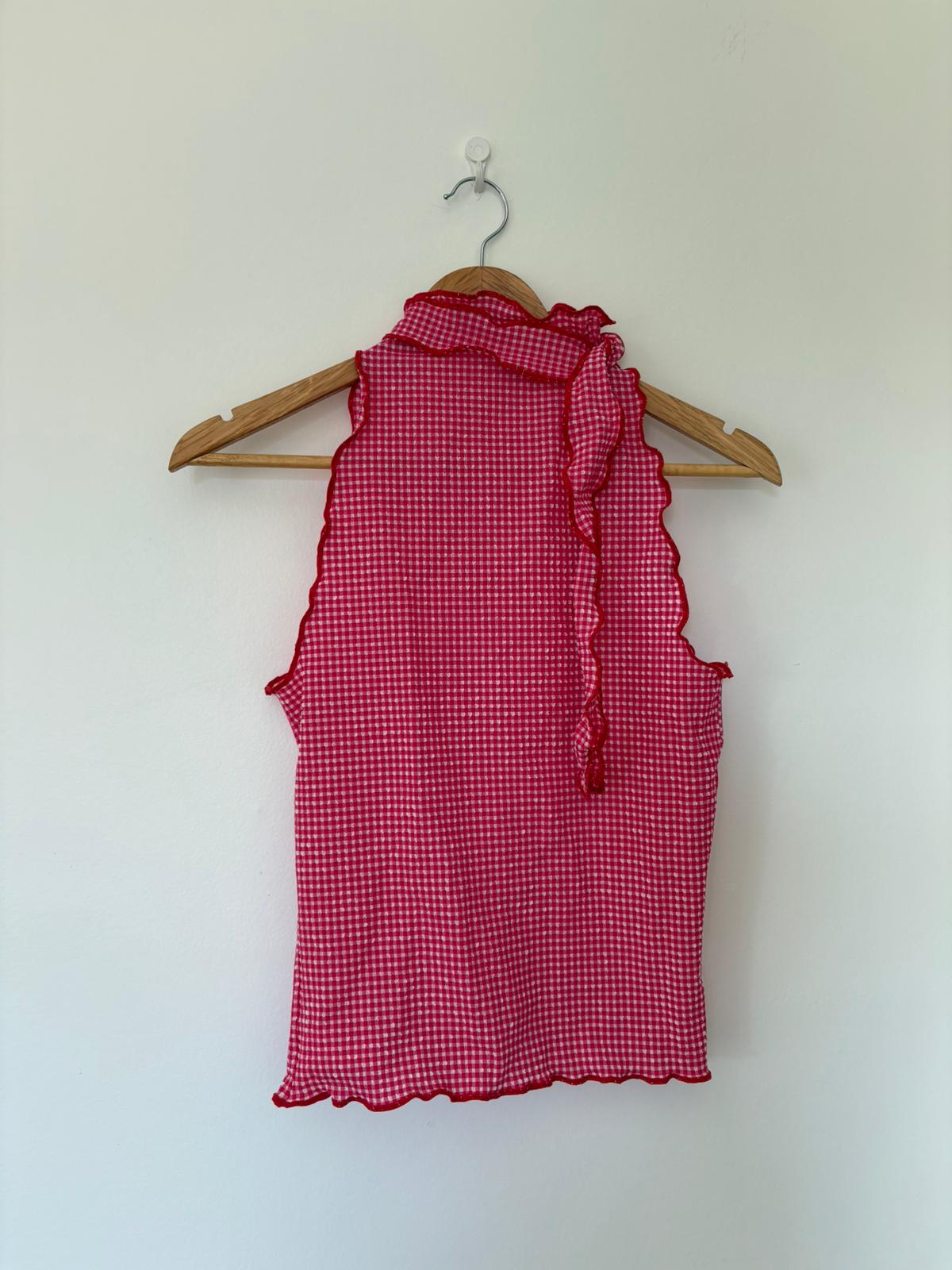 Top en lin, avec épaule finie à la main. L'épaule est à l'honneur dans cette pièce, un détail subtil qui stylise le corps par sa morphologie et sa forme. Le col possède une ouverture qui vient se nouer au tour du cou.